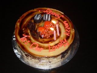 That's right, a BIRTHDAY CAKE!!! With wordings 'To Our Lovely Kezen Fadly' . What the....? La korang nih, bikin surprise la, belanje aku karok + lunch ni pun dah cukup ok la, Thanks Guys!